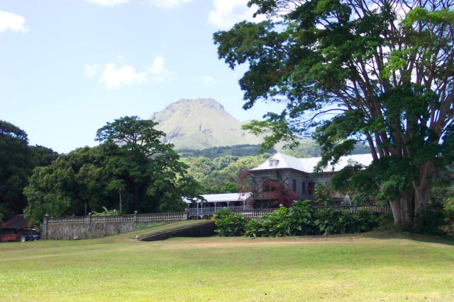 Family home of Depaz (Rhum Distillery) with Mt.Pelee in the background - St. Pierre, Martinique