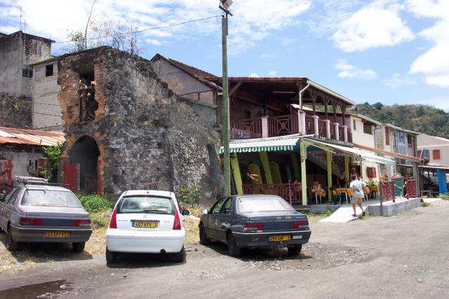 Cafe built using walls from previous city in St. Pierre, Martinique