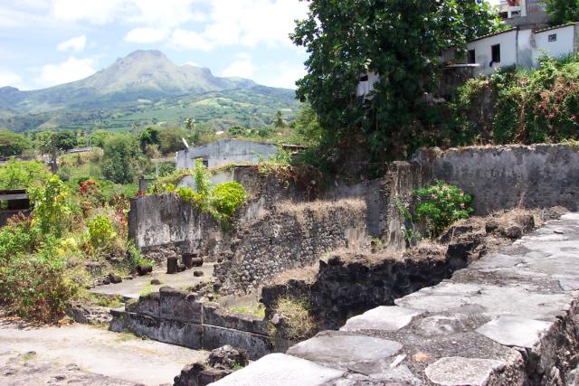 Ruins of the prision with Mt.Pelee in the background - St. Pierre, Martinique
